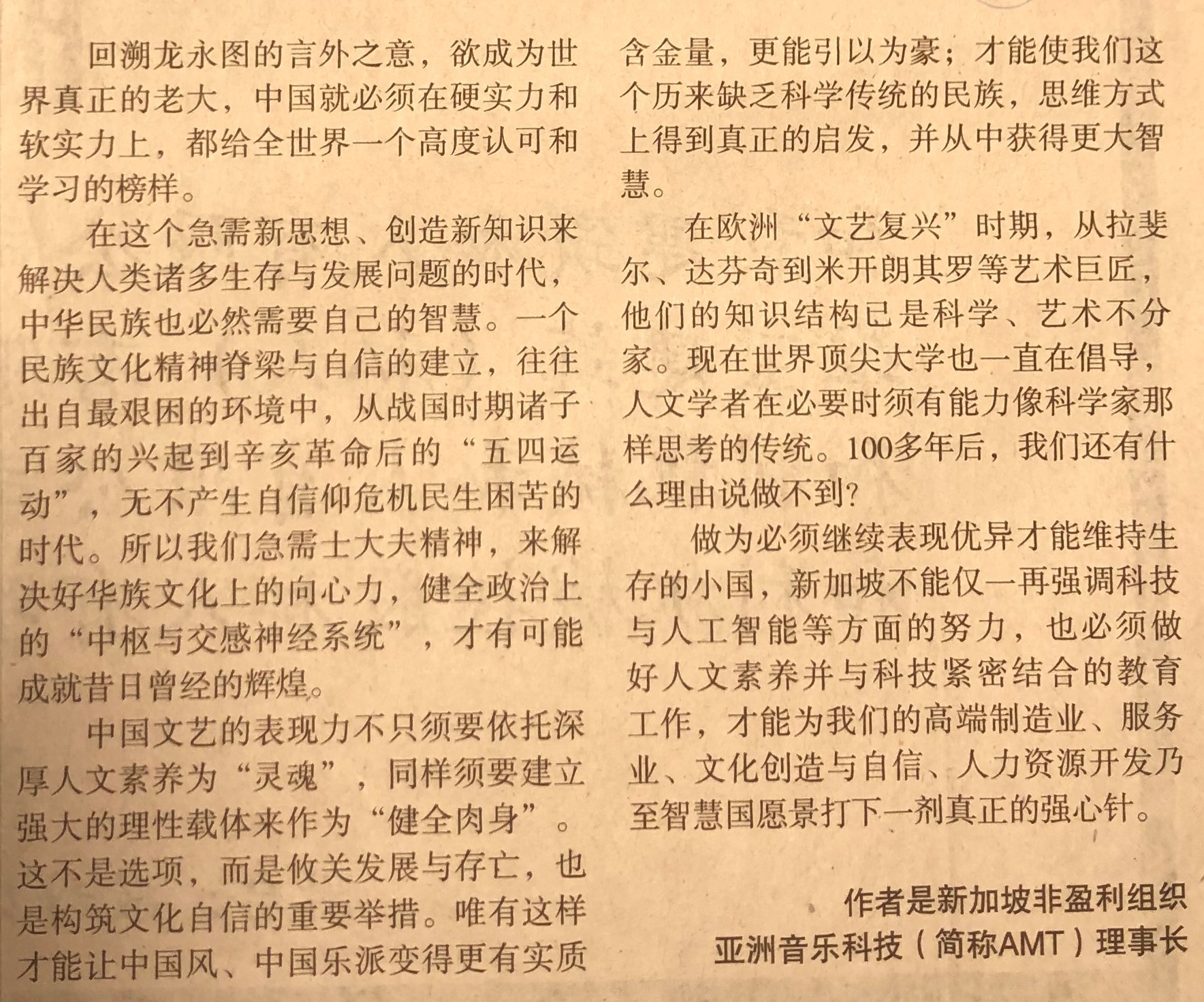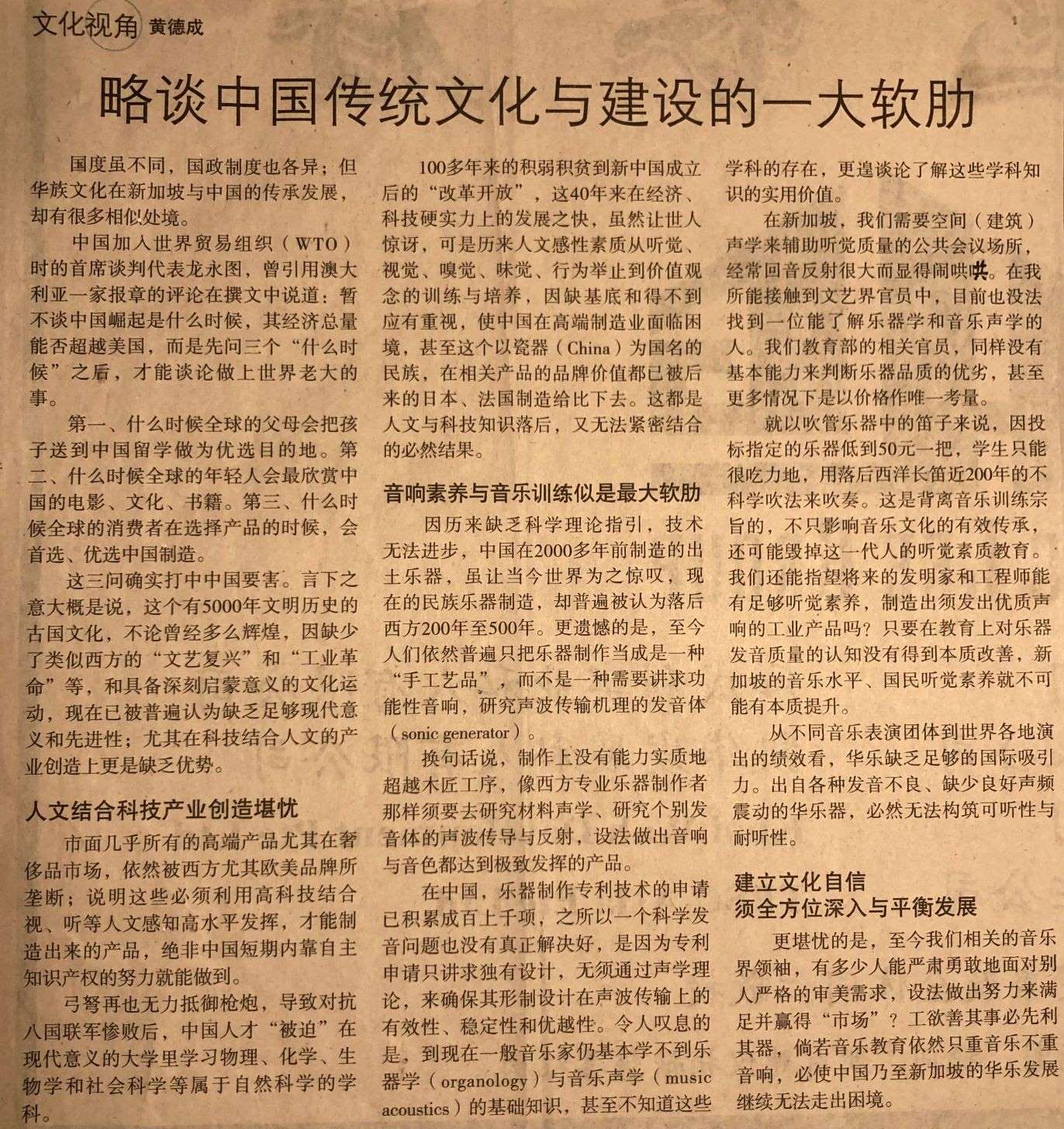 《联合早报》文化视角 - 略谈中国传统文化与建设的一大软肋